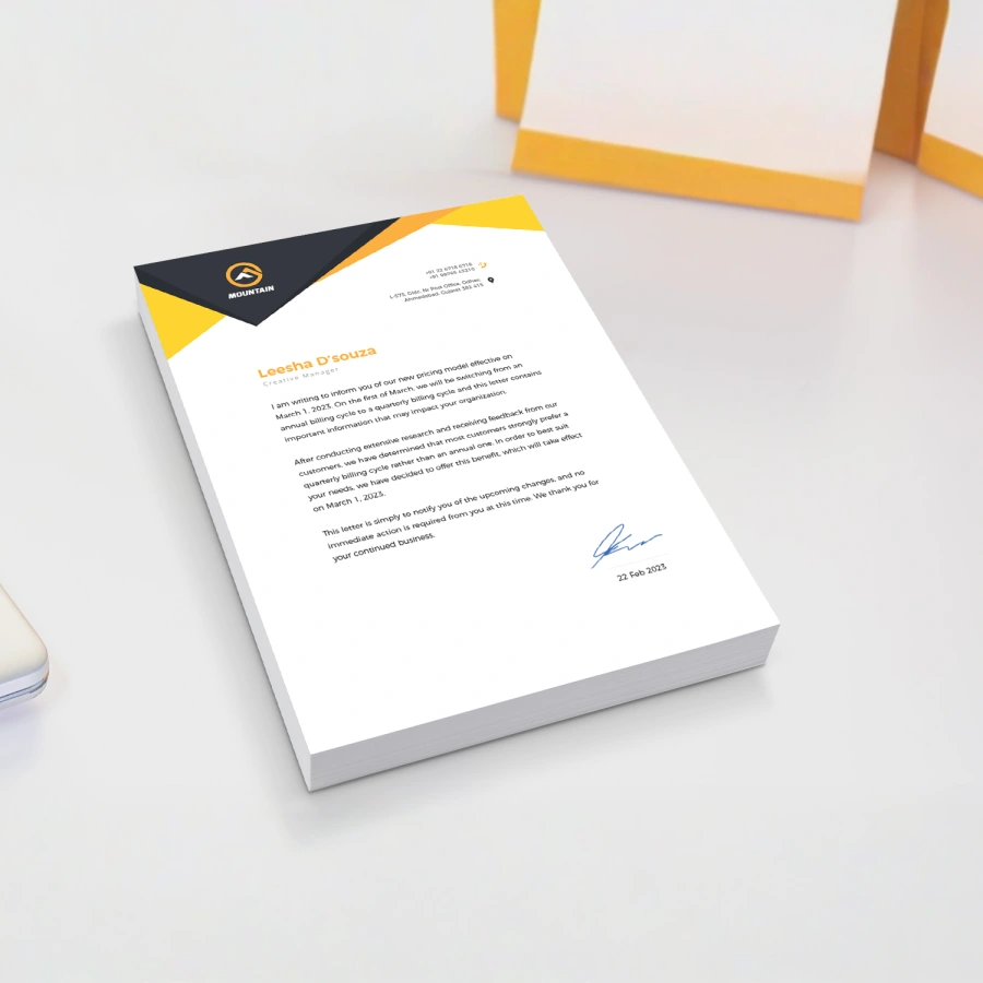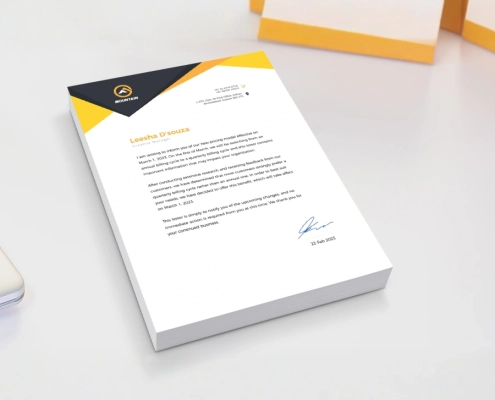 Letterheads are a vital component of your corporate identity, reflecting professionalism, credibility, and attention to detail. Our high-quality letterheads are designed with premium paper, precise printing, and customizable branding elements to effectively represent your company in all correspondence. Whether for official letters, proposals, or client communication, they help convey your message with clarity and elegance. With creative designs, vibrant prints, and consistent brand representation, our letterheads enhance the perception of your business, making every communication a professional statement.